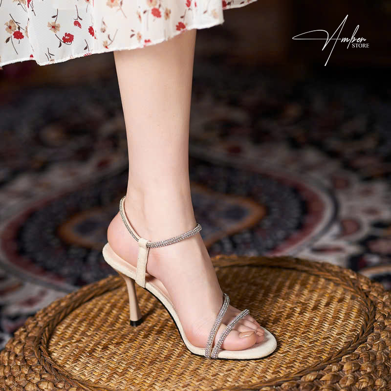 Đôi giày cao gót đính đá lấp lánh là lựa chọn hoàn hảo cho các nàng yêu thích phong cách thanh lịch, quyến rũ. Thiết kế quai mảnh đính đá pha lê tinh xảo giúp đôi chân thêm thon gọn và cuốn hút trong mọi khung hình. Gót nhọn cao 9cm giúp tôn dáng tối đa nhưng vẫn giữ được cảm giác thoải mái khi di chuyển.